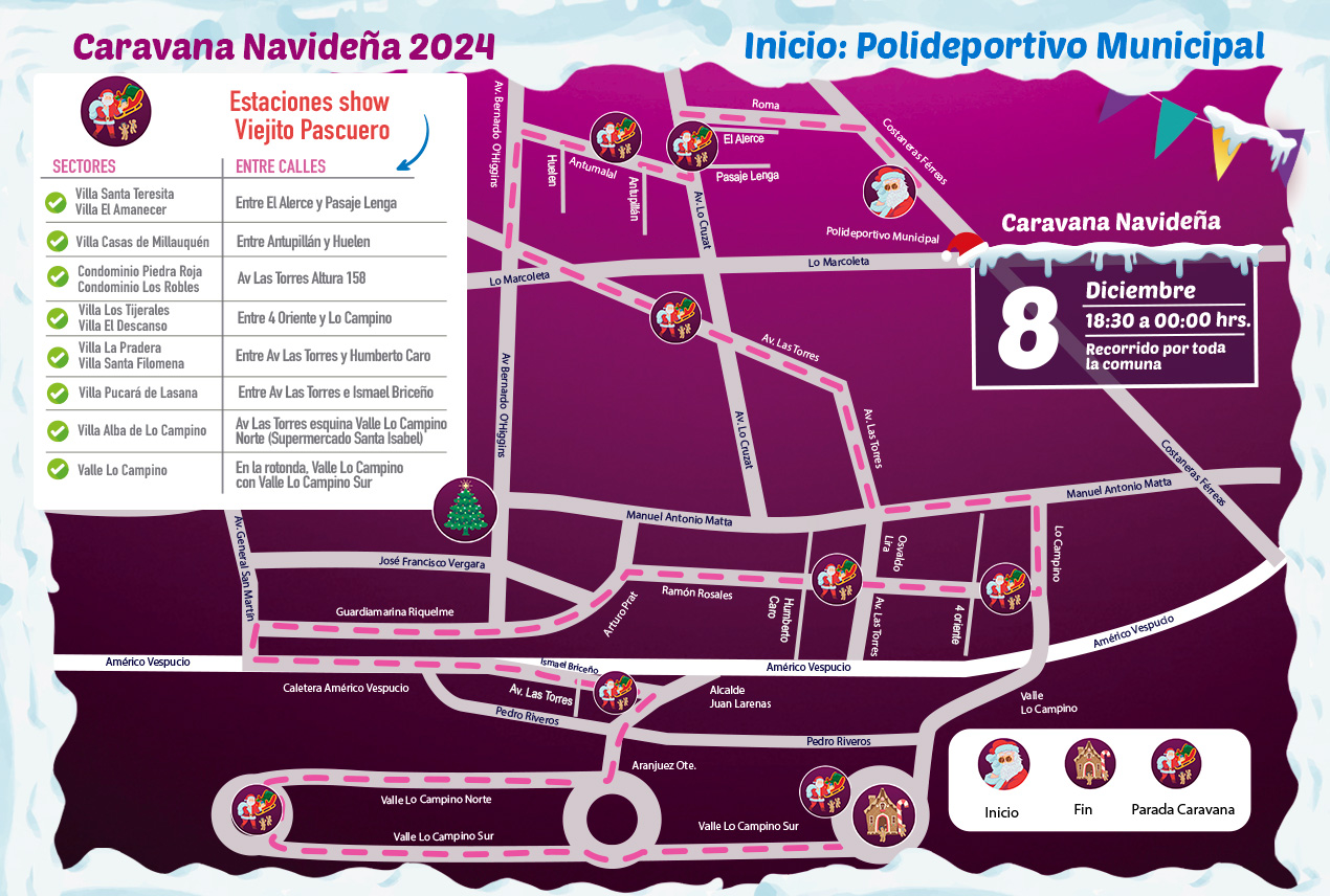 Y para el sábado 7 y domingo 8 de diciembre, una mágica Caravana Navideña recorrerá todos los sectores de Quilicura, con 6 carros alegóricos, música en vivo y un asombroso show de la compañía OtroArte.