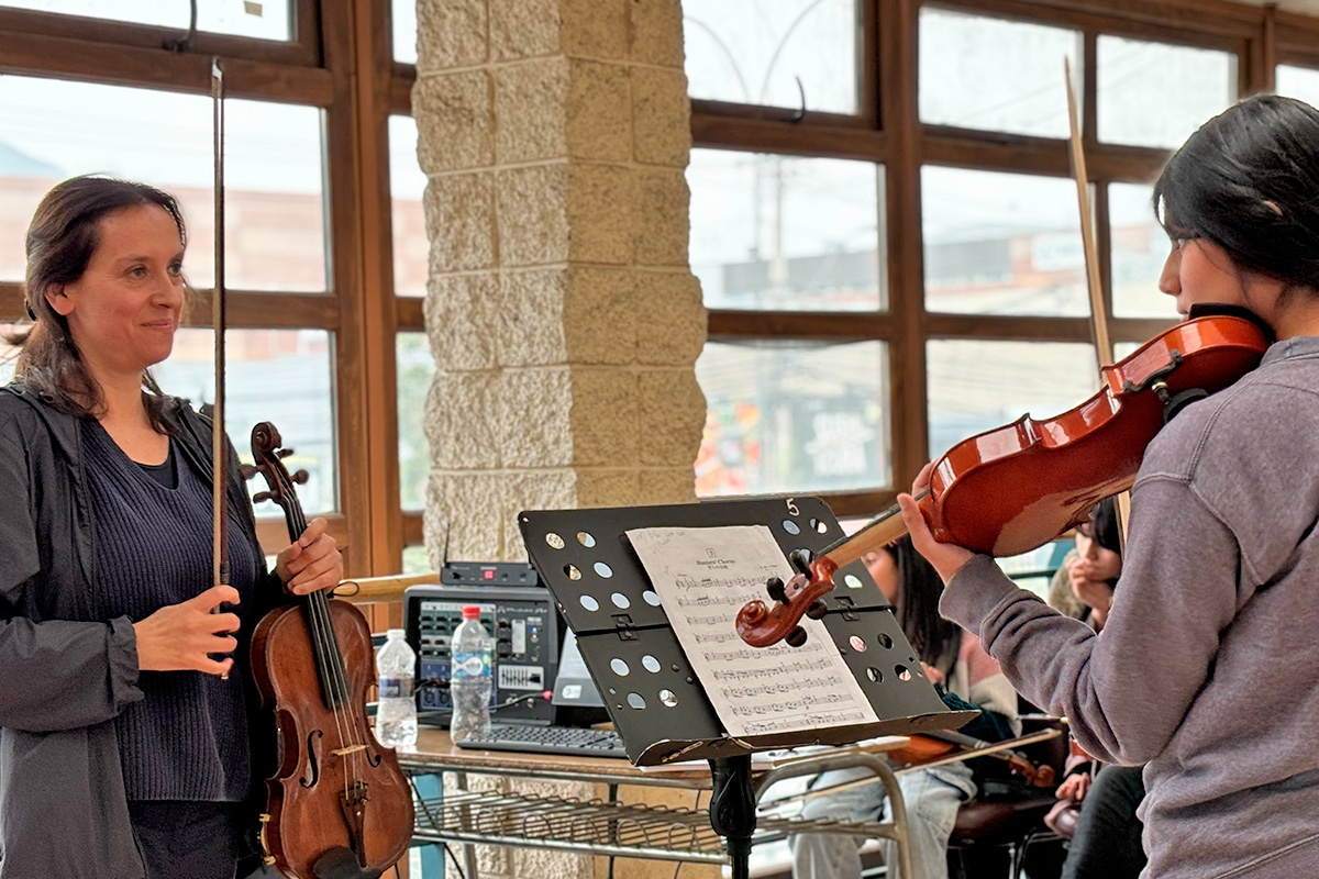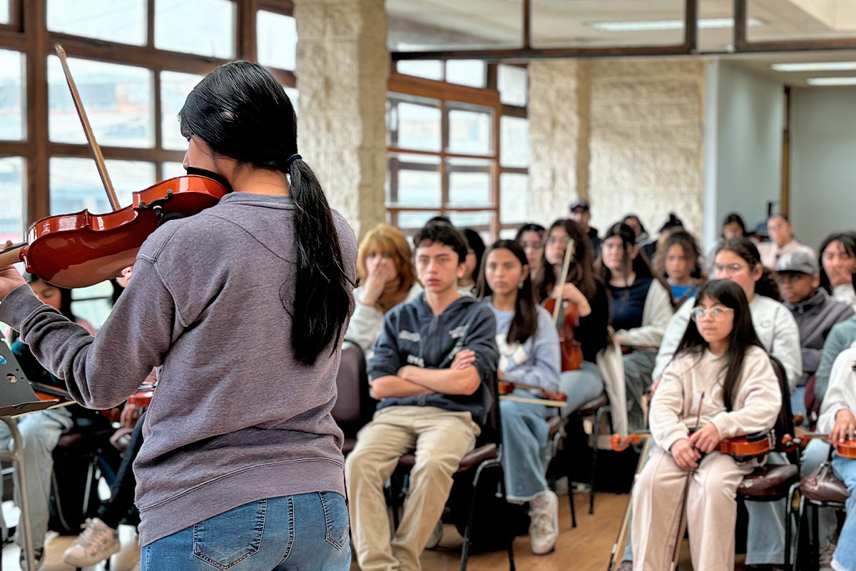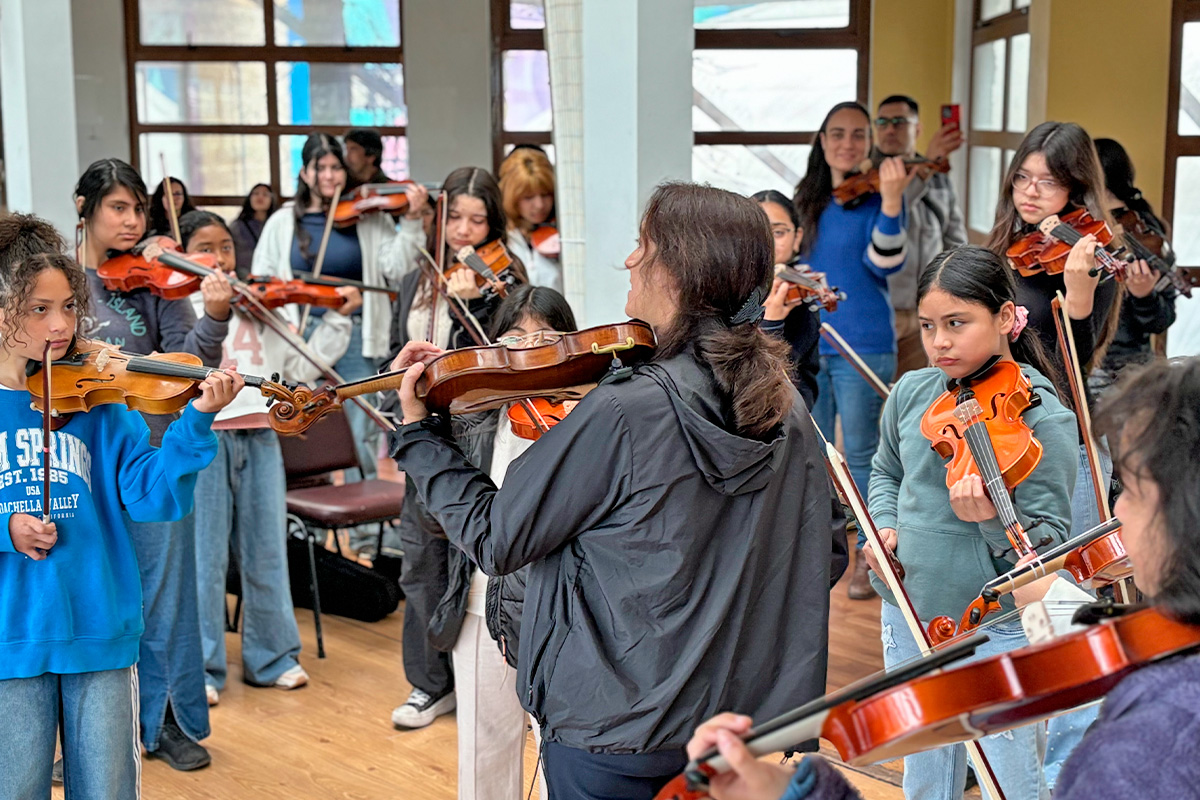 Los sábados 30 de agosto y 6 de septiembre, estudiantes de la Camerata de Violín y del ensamble de Cuerdas Frotadas, respectivamente, participaron en una jornada formativa junto a Alejandra Urrutia, reconocida violinista y primera mujer directora de la Orquesta de Cámara del Teatro Municipal de Santiago.
