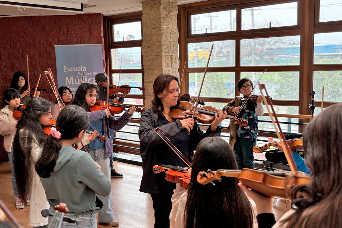 Gracias a la gestión activa y comprometida de nuestra Corpo Quilicura —actual administradora y encargada de la programación académica y artística de la Escuela Municipal de Música— niñas, niños y jóvenes talentos de la comuna han podido enriquecer su formación musical a través de tres experiencias pedagógicas de alto nivel profesional.