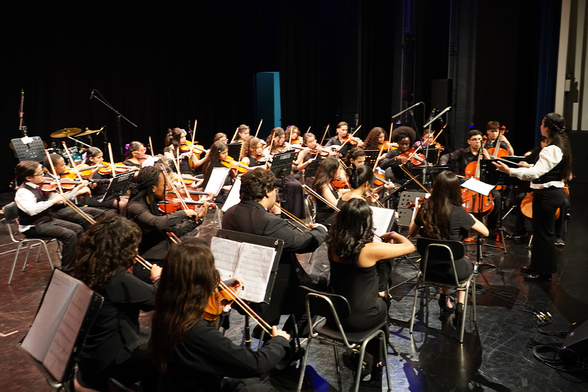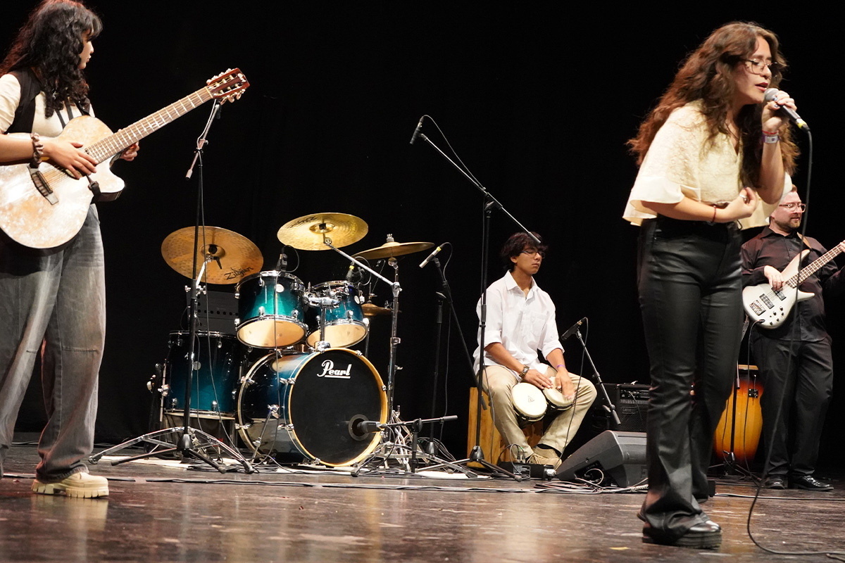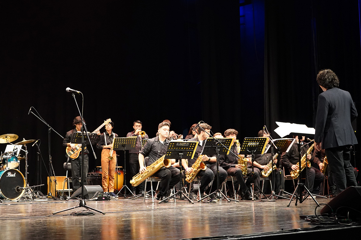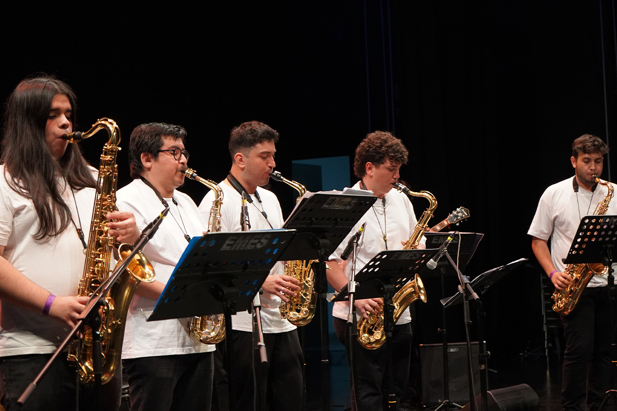 Durante la presentación, subieron al escenario las agrupaciones Coro Infantil, Big Band, Ensamble Popular, Quinteto de Saxos, Banda de Rock, Agrupación Latinoamericana y Orquesta de Cuerdas, interpretando un repertorio diverso que reflejó el aprendizaje artístico desarrollado durante el año.