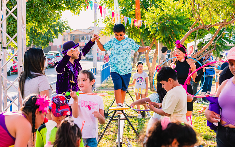 Por su parte, “Sueños de Circo” llegó a distintos puntos de Quilicura, acercando el circo contemporáneo a niñas, niños y familias, y promoviendo el disfrute cultural en plazas y canchas. La itinerancia familiar se hizo presente en Villa Tres Montes, (11/01) Plaza El Mañío (17(01), Villa Los Compositores (18/01) y Villa Santa Teresita (24/01).