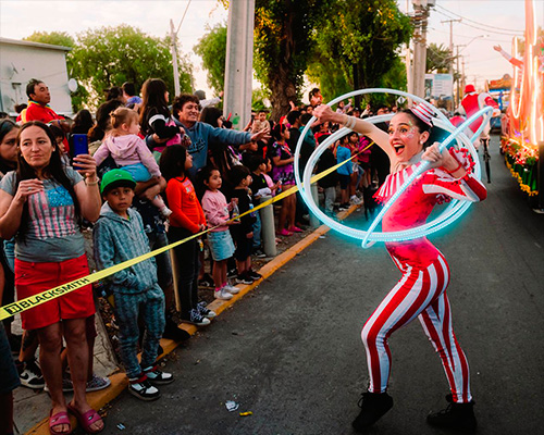 Desde las 18:00 horas, la magia continuará en movimiento con una gran Caravana Navideña, que recorrerá más de 50 villas de la comuna. Seis carros luminosos, encabezados por Santa y sus ayudantes, llevarán a cada rincón de Quilicura un espectáculo lleno de música, color y alegría junto a la Compañía OtroArte, quienes inundarán de música, bailes, regalos y sorpresas los hogares de nuestra comuna.